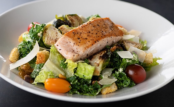 romaine, roasted brussels sprouts, pistachios, raisins, baby tomatoes, parmesan.